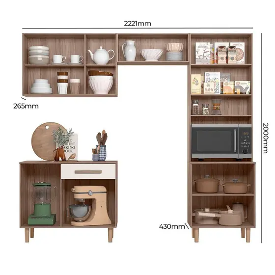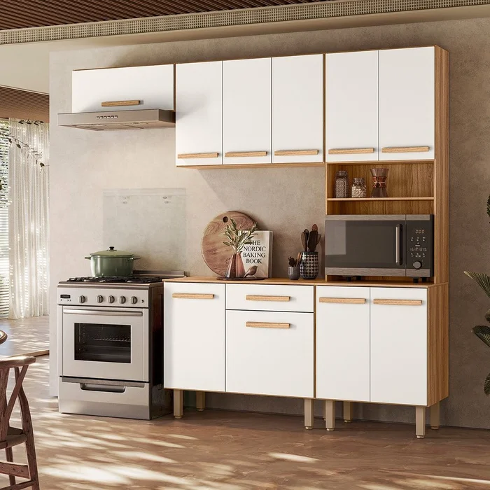 Kit cozinha Com Balcão com 10 Portas e 1 Gaveta
