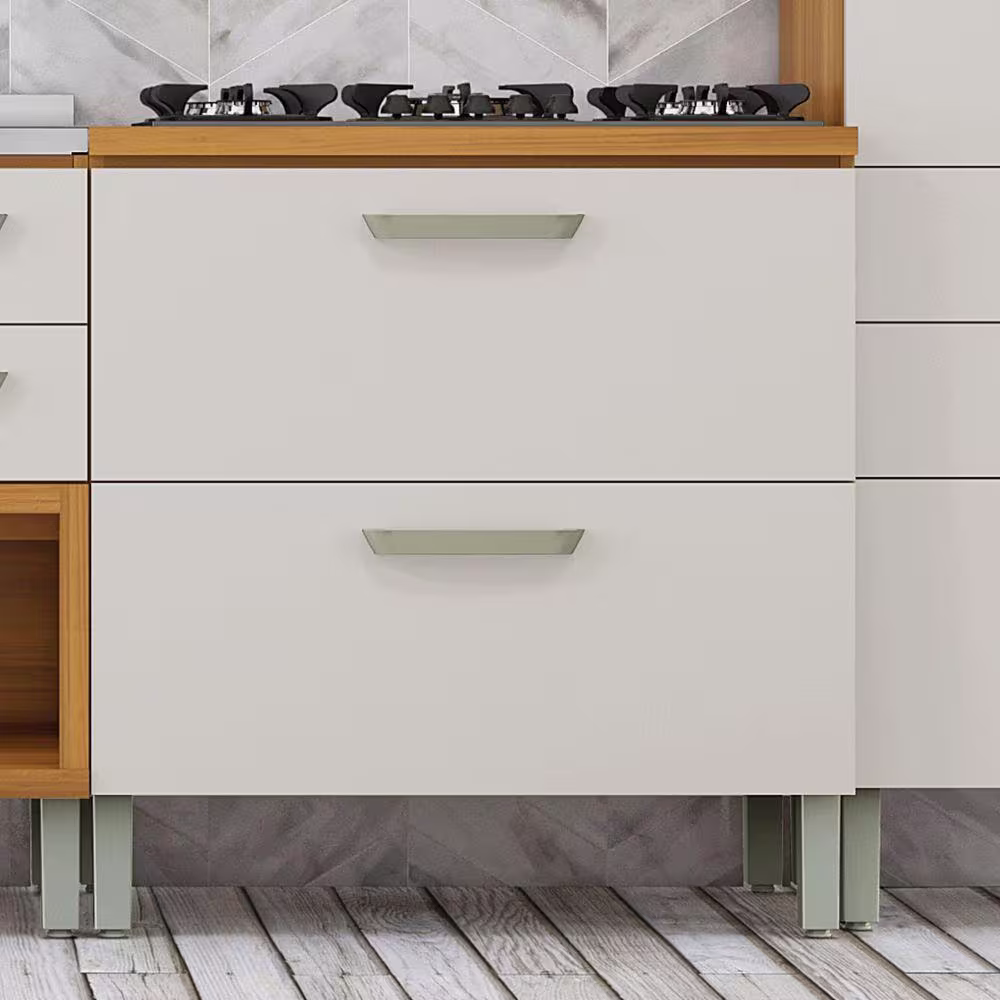Informações Complementares: - Ergonômicos gavetões com laterais e traseiros altos para armazenagem com segurança de utensílios e mantimentos. - Corrediça Telescópica Abertura Integral: Robusta e com três estágios, esta corrediça é ideal para o uso diário, facilitando o acesso aos ut