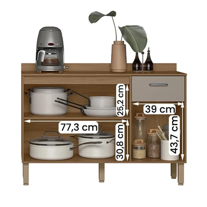 Transforme sua rotina culinária com este balcão compacto, perfeita para apartamentos ou áreas menores, onde cada detalhe conta.