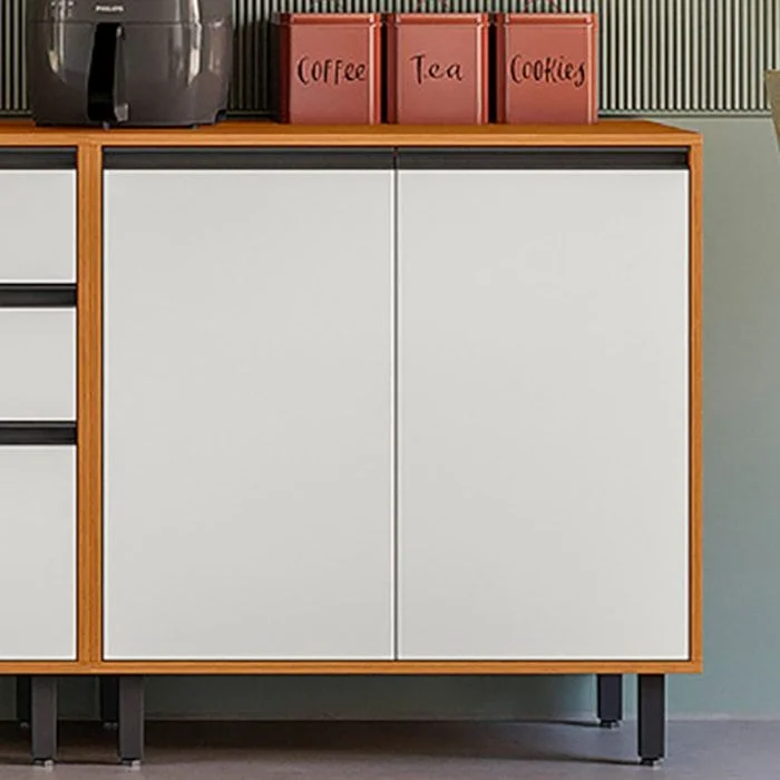 Fabricado em MDP com acabamento em pintura UV, que confere maior durabilidade e resistência. O acabamento acetinado nas portas proporciona um toque de sofisticação, harmonizando perfeitamente com diferentes estilos de decoração.