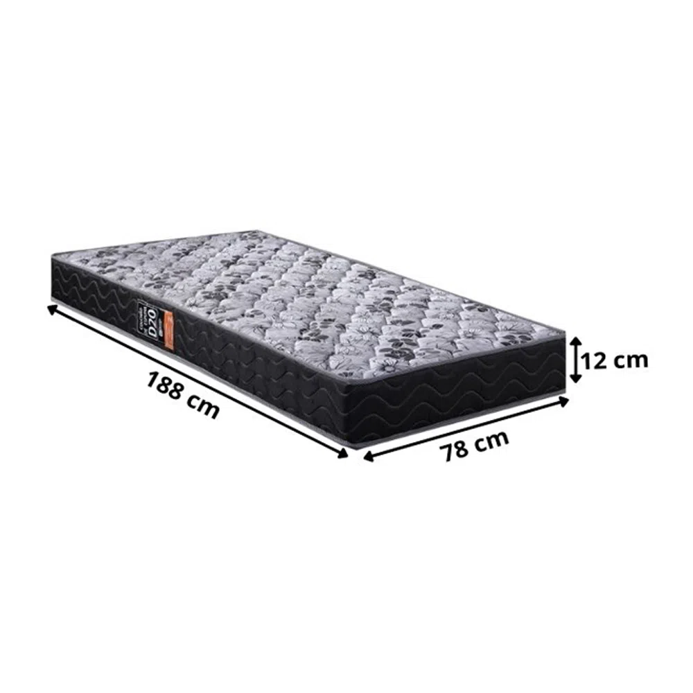 Tampo/Lateral: Tecido 100% Poliéster Bordado; Núcleo: Espuma D20; Nível de Conforto: Intermediário.