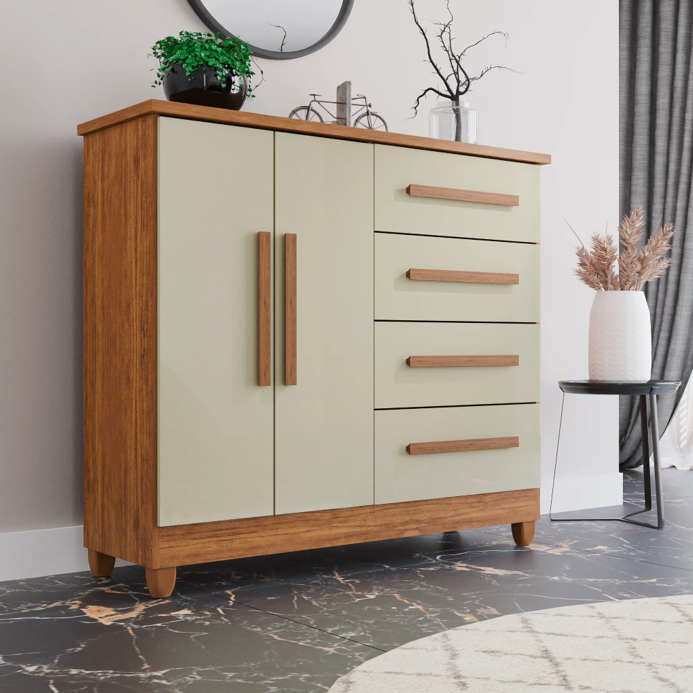 Cômoda 2 Portas 4 Gavetas Com Sapateira E Cabideiro Dubai Plus Imop Cinamomo