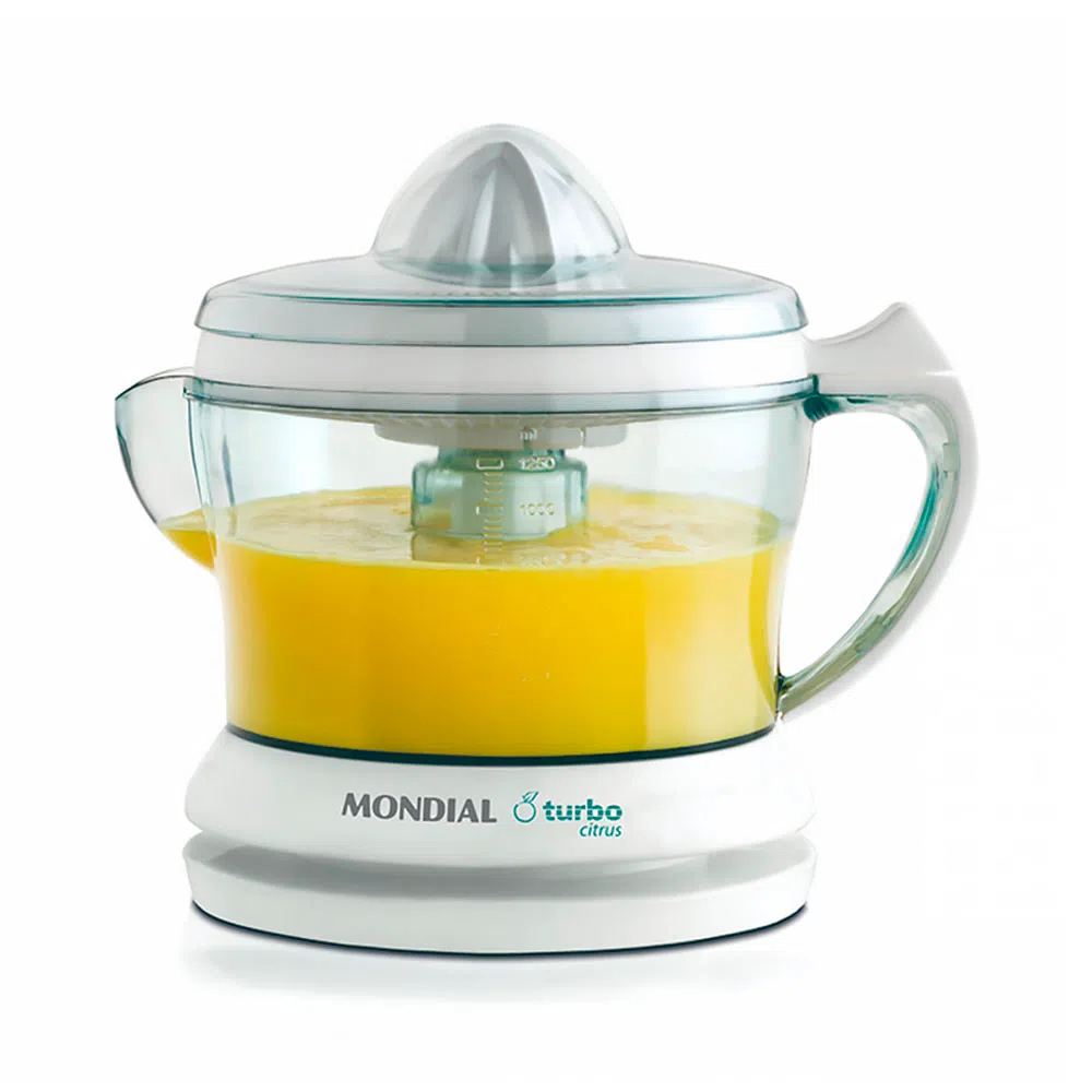 Garanta toda a reposição da vitamina C para sua família, pois o Turbo Citrus conta com uma jarra com capacidade de 1,25 litros, que se encaixa de forma rápida, é transparente o que facilita a visualização enquanto faz o preparo dos sucos e ainda seu acionamento é automático, garantindo rapidez e eficiência. Além disso, possui um cone dois em um, que pode ser utilizado em frutas maiores e também em frutas menores como limão.