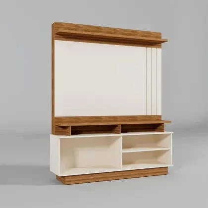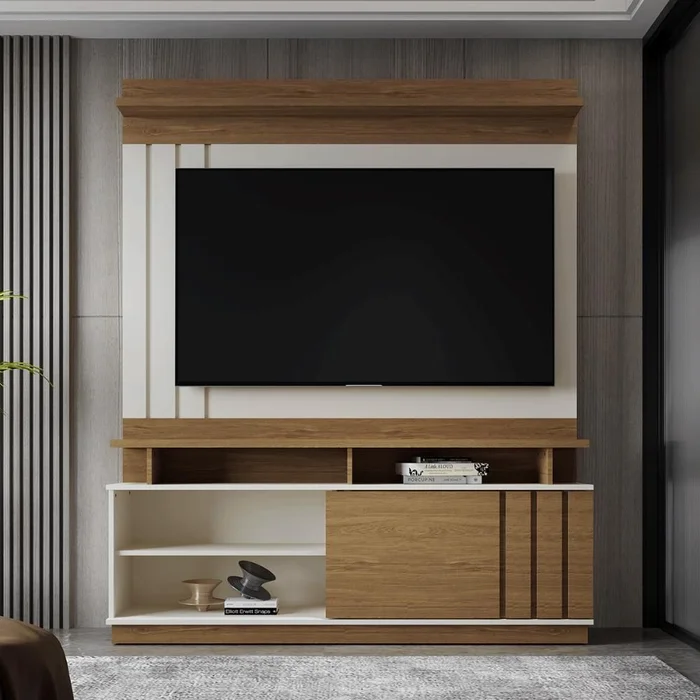 Tampo E Prateleira Superior De 25Mm, Porta De Correr Com Detalhe Ripado, Painel Com Detalhe Ripado, Suporta Tv De Até 55"