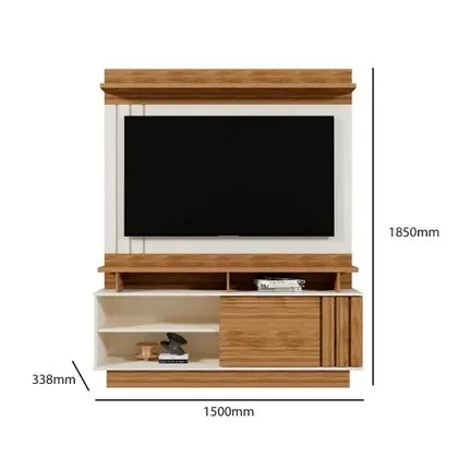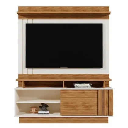O Home Goias Elegante E Robusto, Possui Tampo E Prateleira Superior De 25Mm, Painel Com Detalhe Ripado, A Porta De Correr Também Possui Detalhe Ripado, Nichos Para Decorar Como Desejar E Suporta Tv De Até 55"