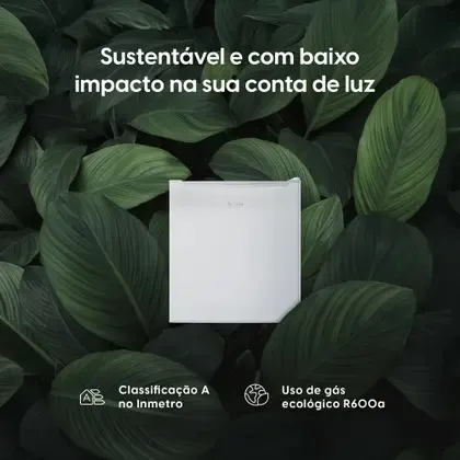 Seu sistema de refrigeração com gás ecológico R600A garante mais eficiência e sustentabilidade. Além disso, o funcionamento silencioso permite que ele seja instalado até em dormitórios, sem incômodos.