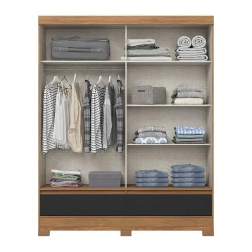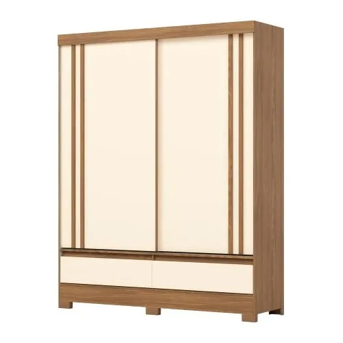 Guarda Roupa 2 Portas de Correr e 2 Gavetas c/ Pés Briz B373 Flex Nature/Off White ou Preto - Henn