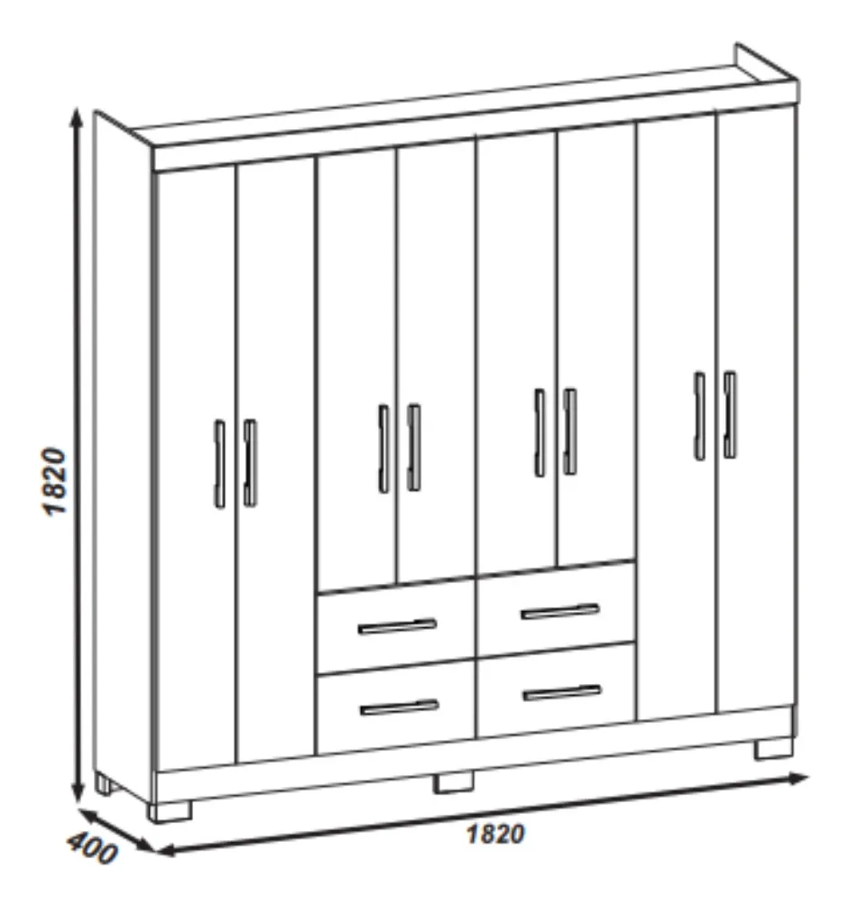 Guarda Roupa Casal 8 Portas 4 Gavetas com Pés Itapema Atualle