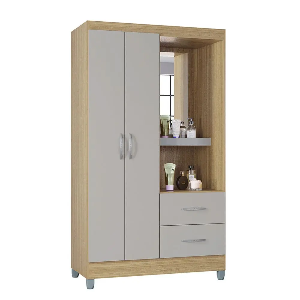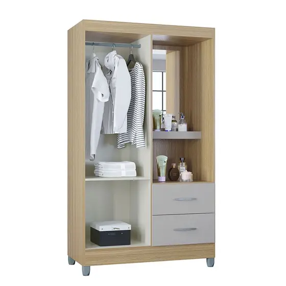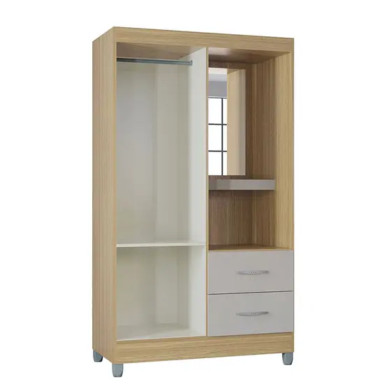 O Roupeiro Cordoba é um produto de alta qualidade, fabricado em MDP 15 mm, com portas e gavetas robustas e funcionais. Possui 02 portas, 02 gavetas e 1 espelho, oferecendo amplo espaço para armazenar roupas e acessórios.