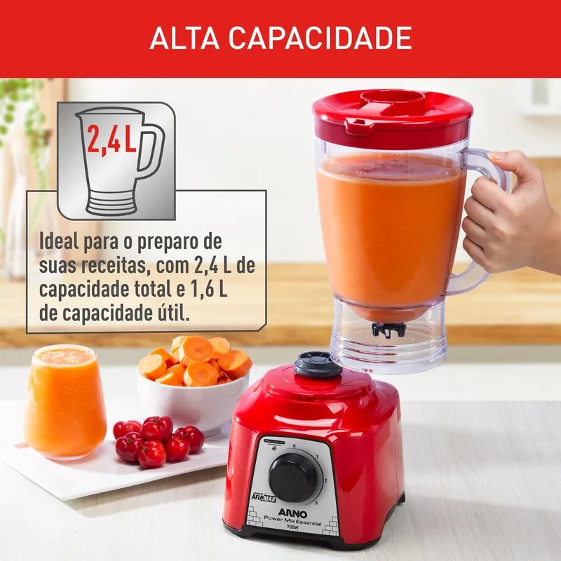 - > Potência para todas as receitas: Com 700W, o Liquidificador Arno Power Mix garante alto desempenho no preparo de sucos, vitaminas e molhos. Potente e eficiente, proporciona misturas homogêneas com rapidez, facilitando seu dia a dia na cozinha.