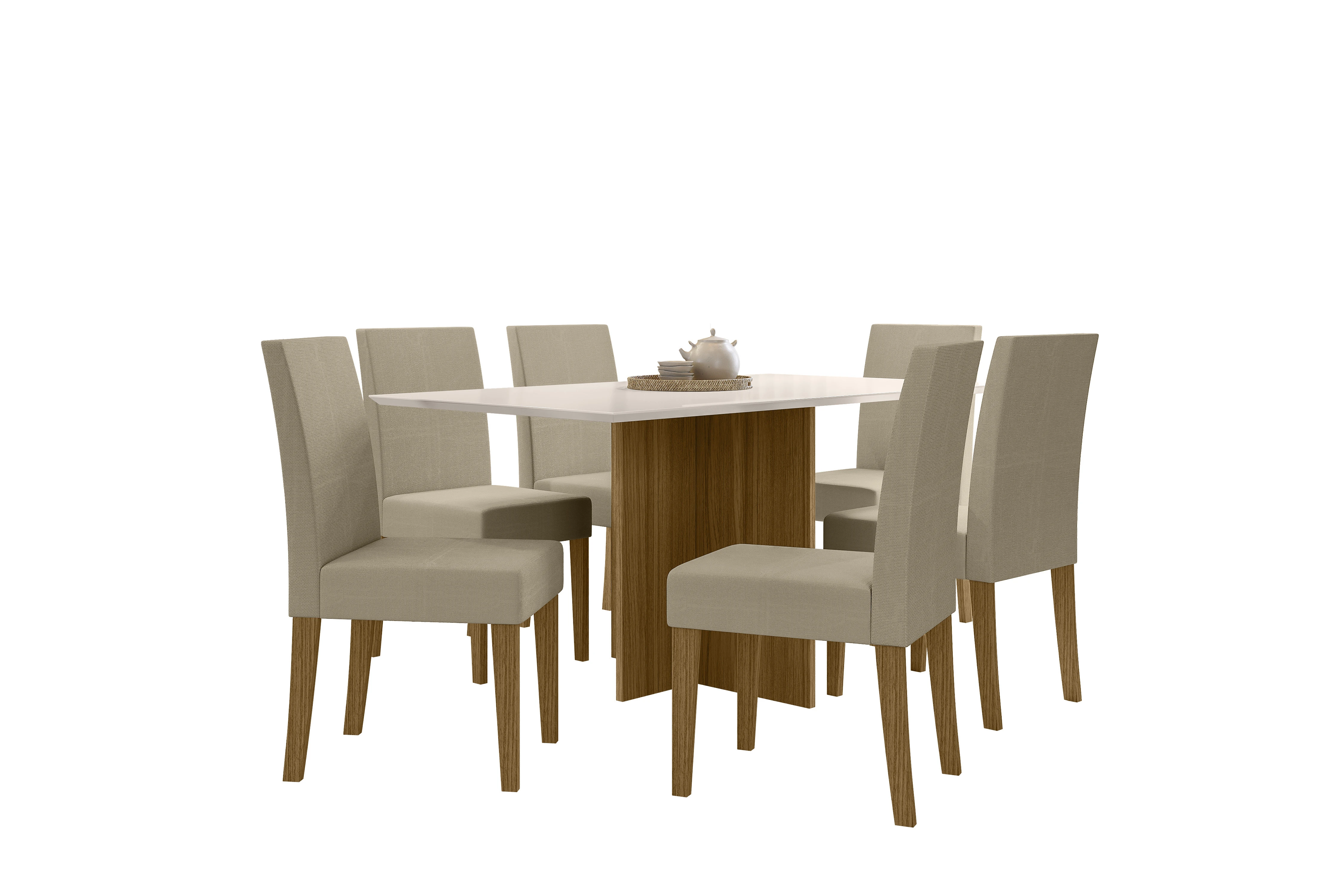 O Conjunto de Mesa Helo com 6 Cadeiras, da Poliman, é a escolha ideal para quem busca um toque moderno e sofisticado na sala de jantar. Com design contemporâneo, a mesa Helo se destaca pelo visual elegante e robusto, adaptando-se perfeitamente a diversos estilos de decoração. Sua base é composta por painéis bem estruturados, garantindo não apenas charme, mas também estabilidade e durabilidade.