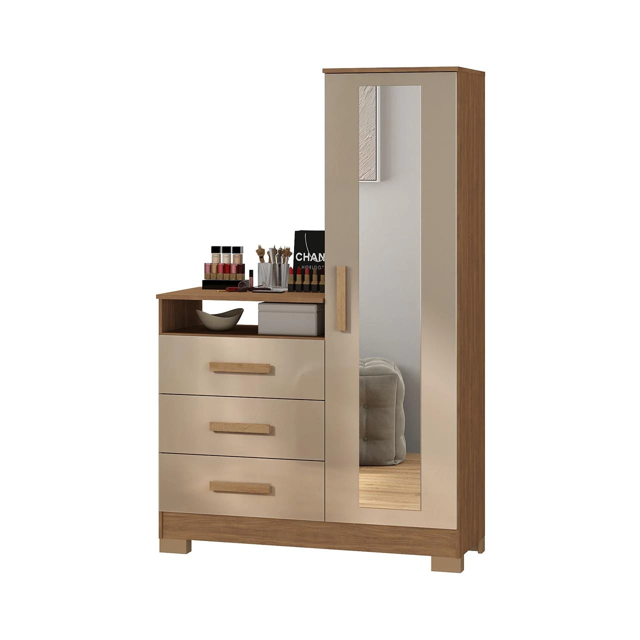 Puxadores em MDF na cor madeirado