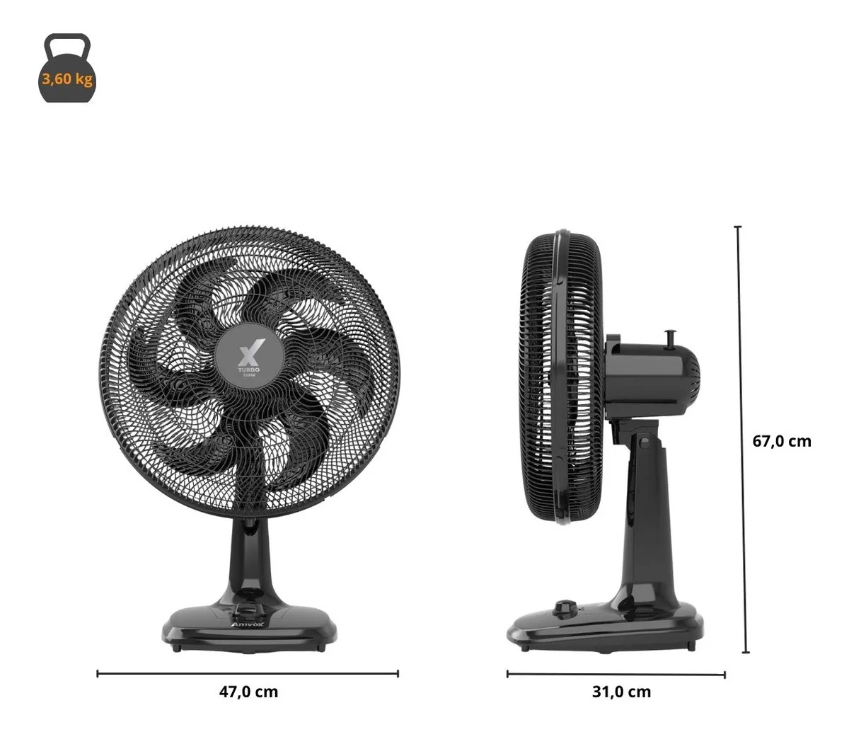 Ventilador de Mesa Amvox Turbo AMV4126 50cm 3 Velocidades Preto - Potência, Silêncio e Estabilidade